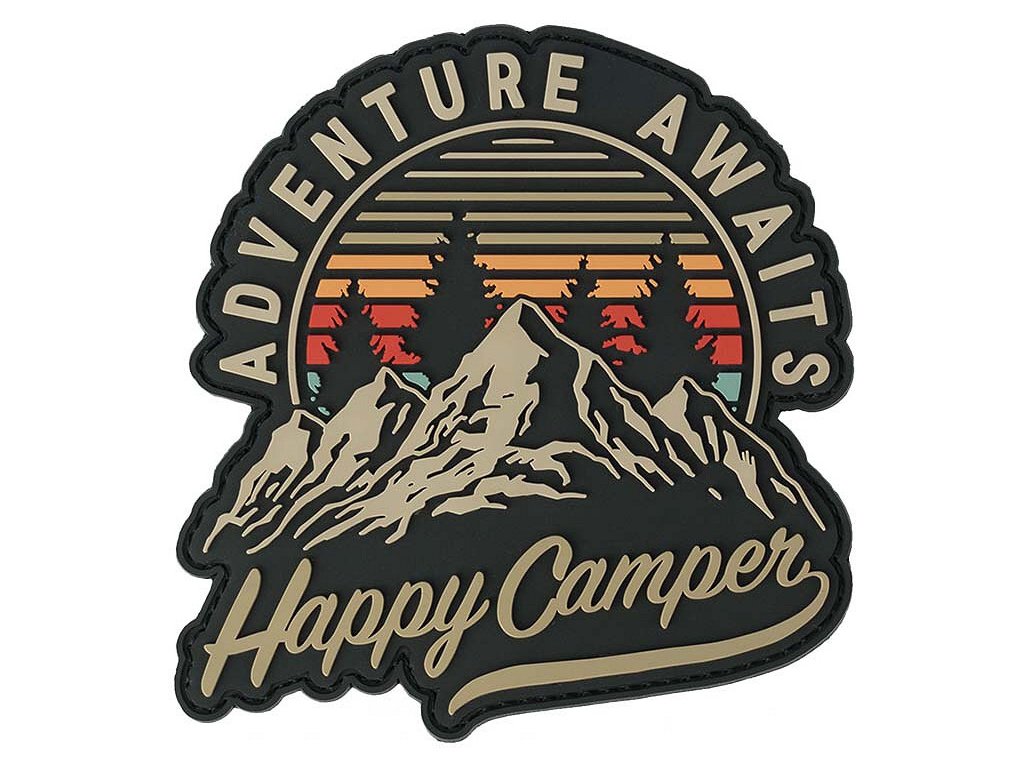 3D PVC Nášivka/Patch Happy camper Adventure awaits - black/sand