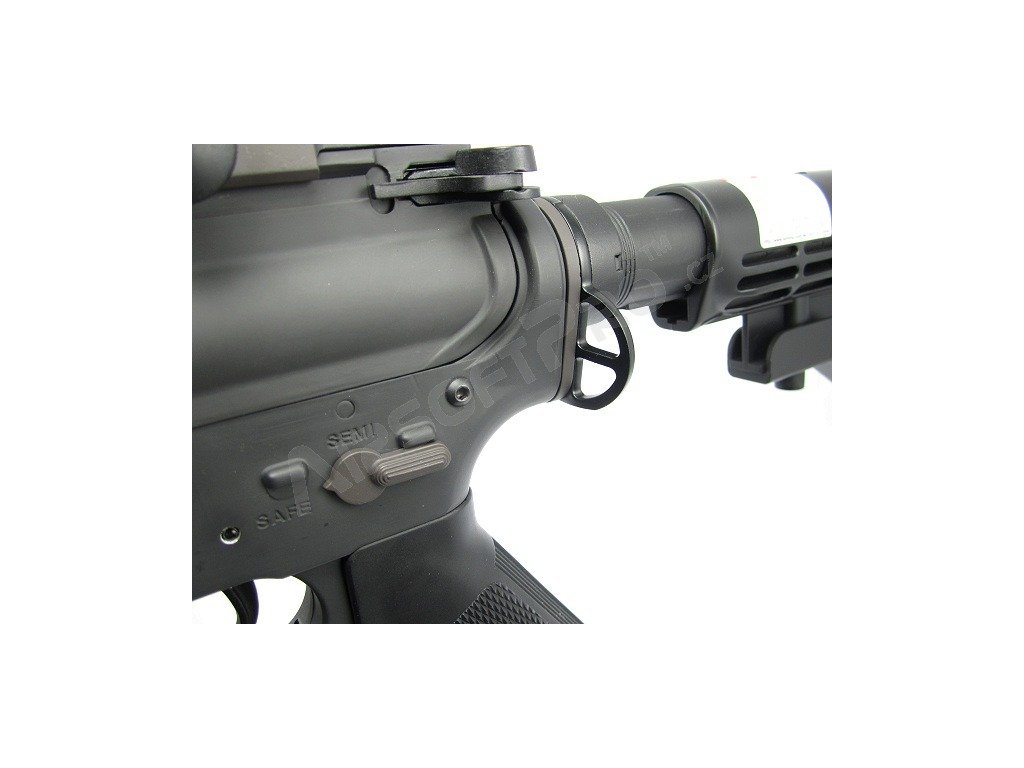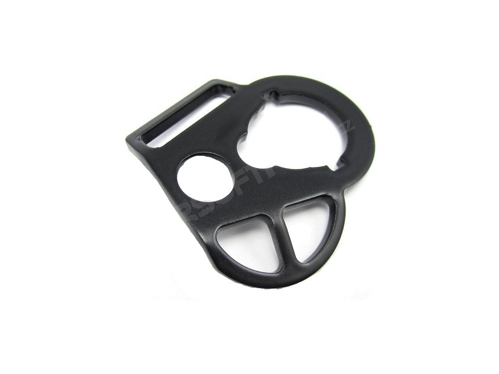 Steel double-sided loop for sling under the retractable stock. Made from bent steel with high-quality matte finish. Designed for electric rifles of the M4 series with a retractable stock.
