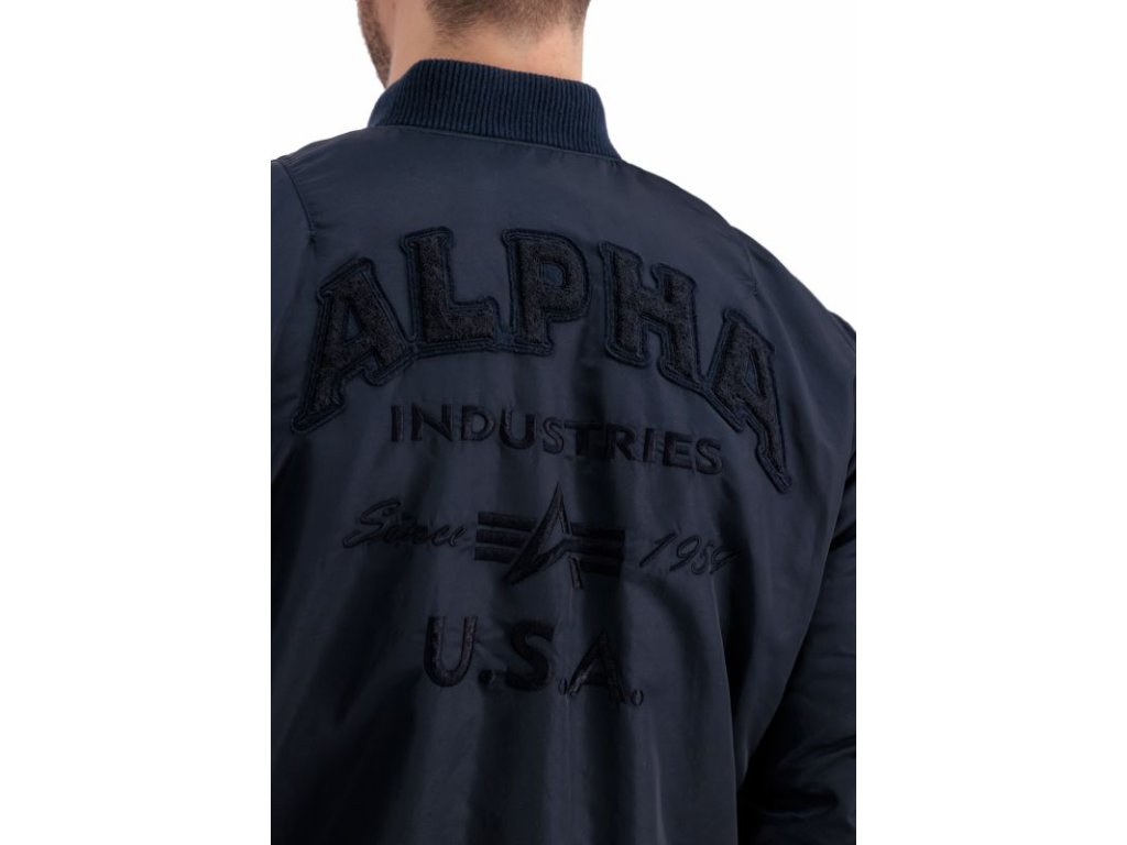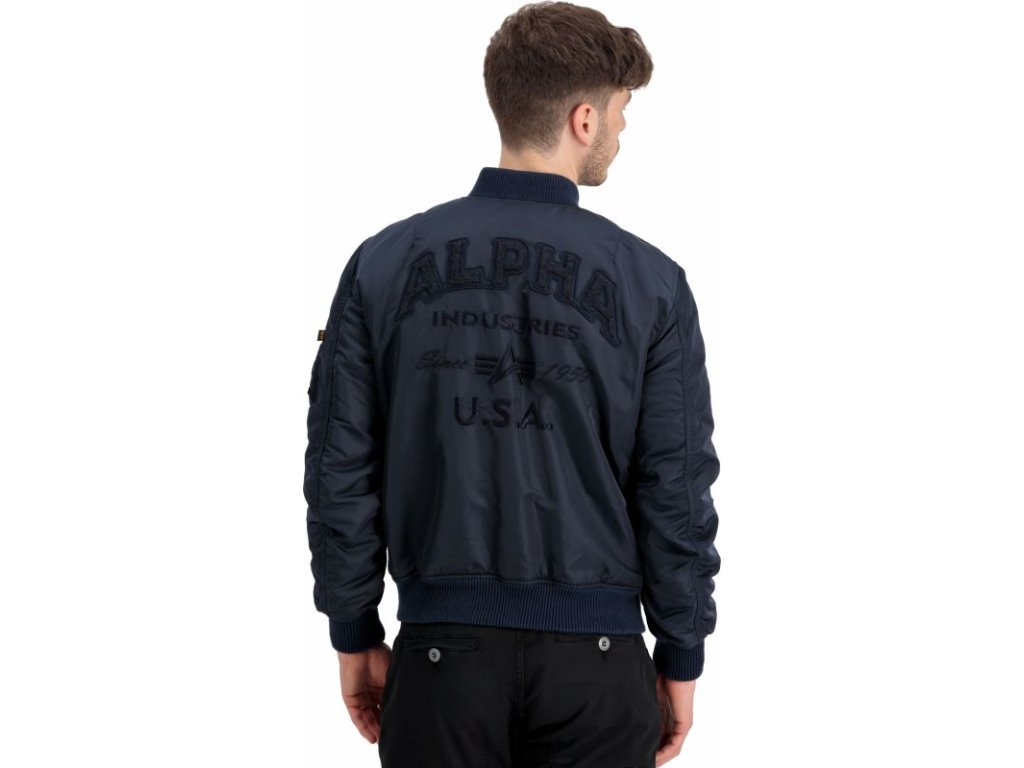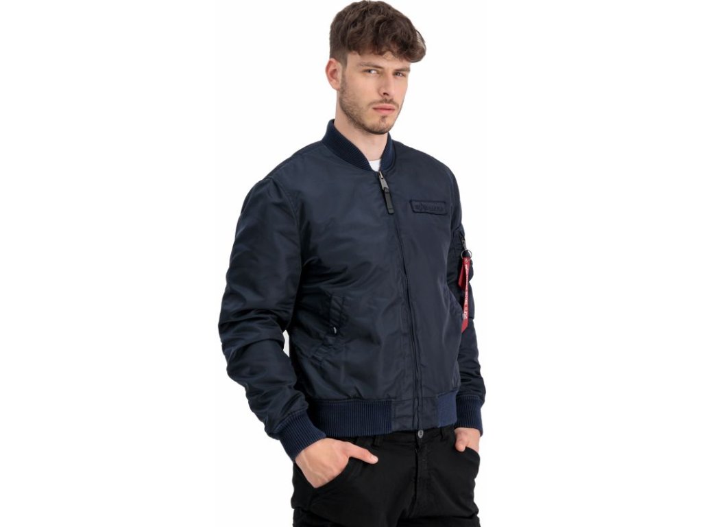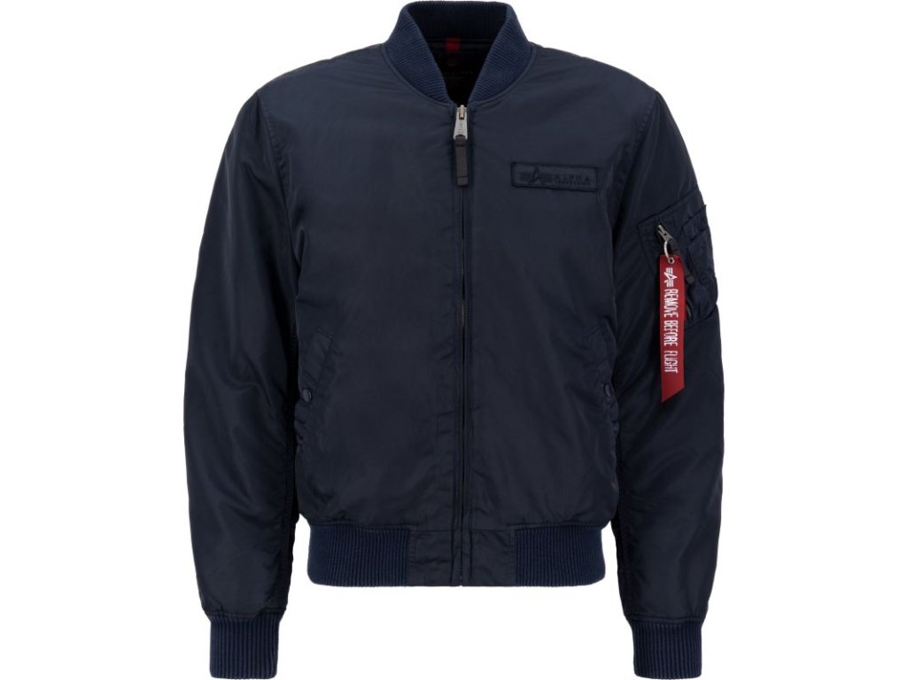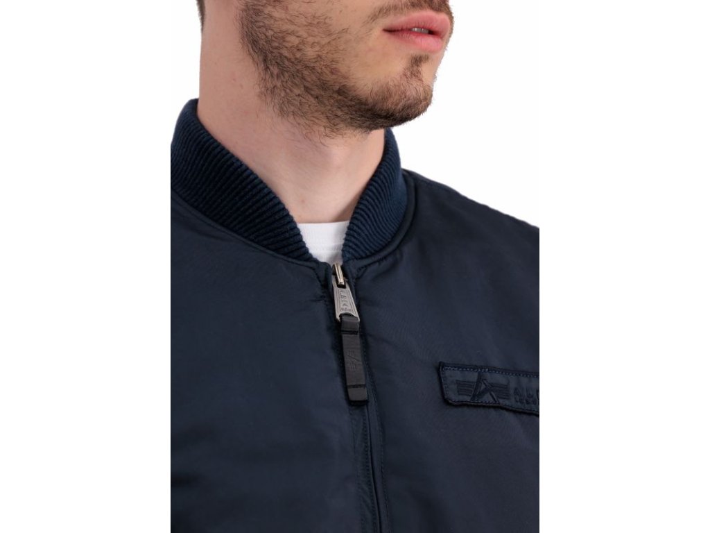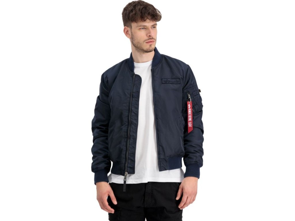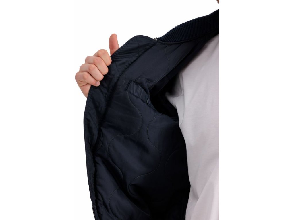 Jacket MA-1 VF Authentic Overdyed in navy blue color, where VF means Vintage Fit, which means that this version fits the user's body better. Men's bomber jacket MA1 with a casual fit and zip fastening.