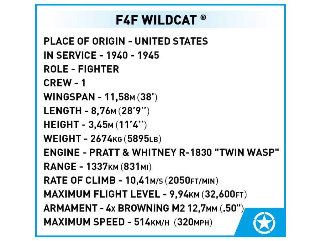 COBI Stavebnica HC WW2 F4F Wildcat (COBI-5731)