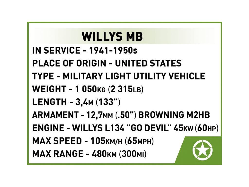 COBI Stavebnica HC WW2 Willys MB (COBI-2296)