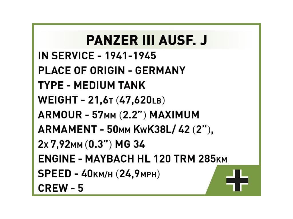 COBI Stavebnica WW2 Panzer III Ausf. J (COBI-2712)