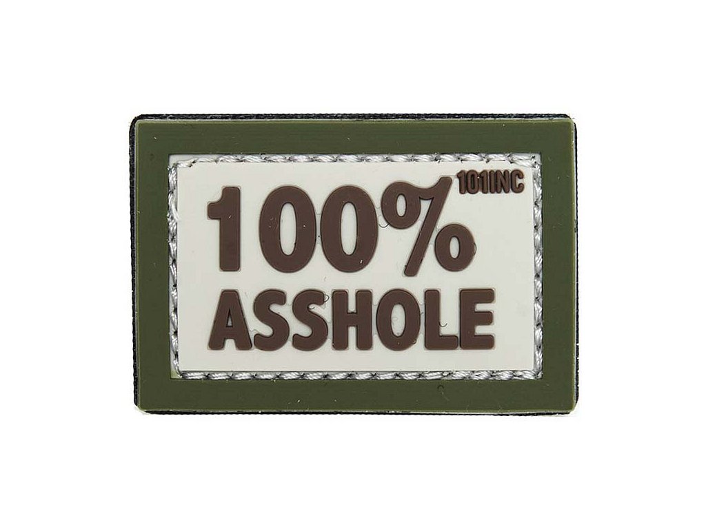 101 INC – 3D PVC NÁŠIVKA 100% ASSHOLE | SAND/GREEN | #14077 | 3,5 × 5,3 CM
