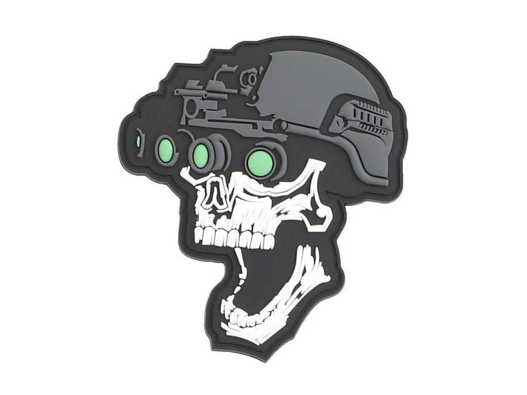 3D PVC Nášivka/Patch Night vision skull - bílá