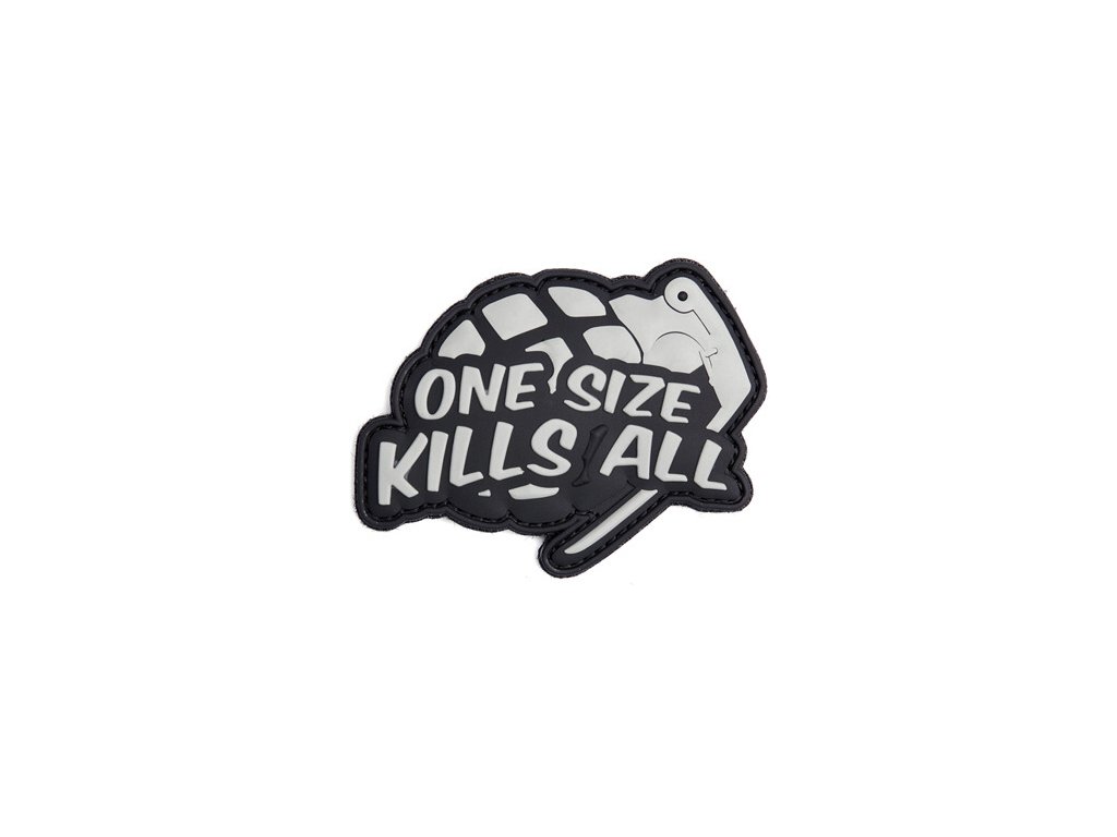 101 INC – PVC NÁŠIVKA ONE SIZE KILLS ALL | GREY/BLACK | 7 × 9,5 CM