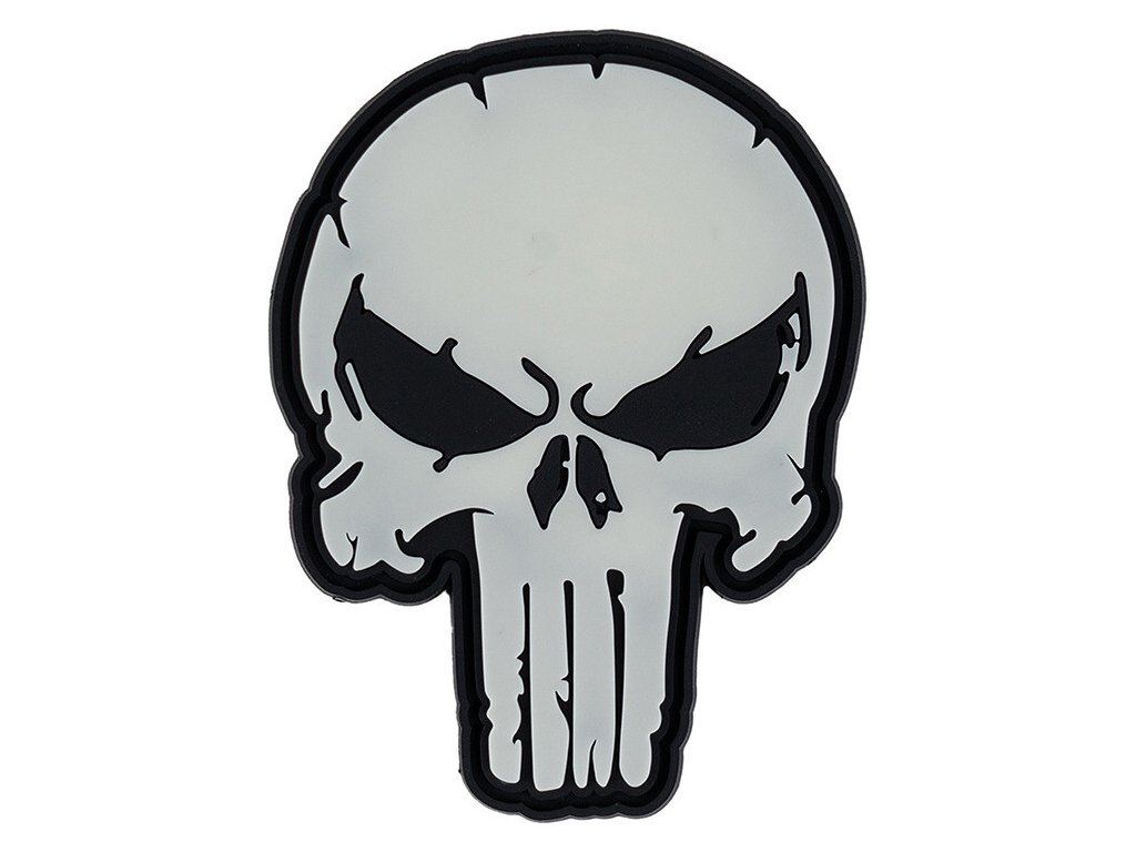 3D PVC Nášivka/Patch Punish skull glow in the dark - grey/black