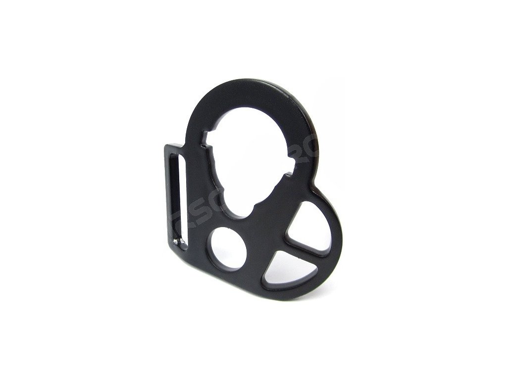 Ocelové oboustranné oko pro závěs pod výsuvnou pažbou. Vyrobené z ohýbané oceli s vysokokvalitní matnou povrchovou úpravou. Určené pro elektrické pušky série M4 s výsuvnou pažbou.