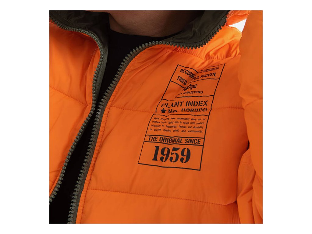 ALPHA INDUSTRIES BUNDA HOODED PUFFER FD REV. – SAGE / ORANGE (198117/228)
