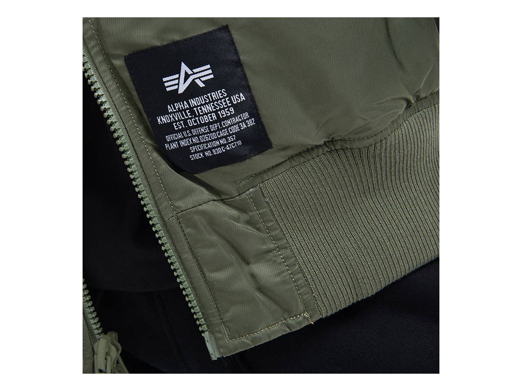 » Ikonické detaily: RBF tag na rukávu a loga Alpha Industries na puffer straně