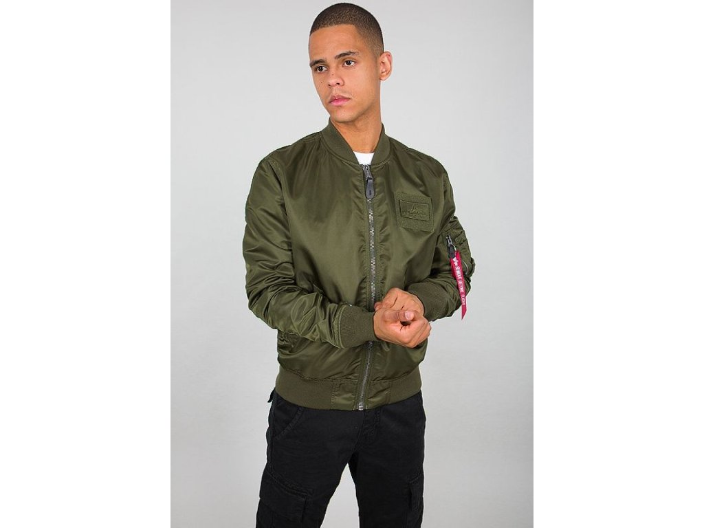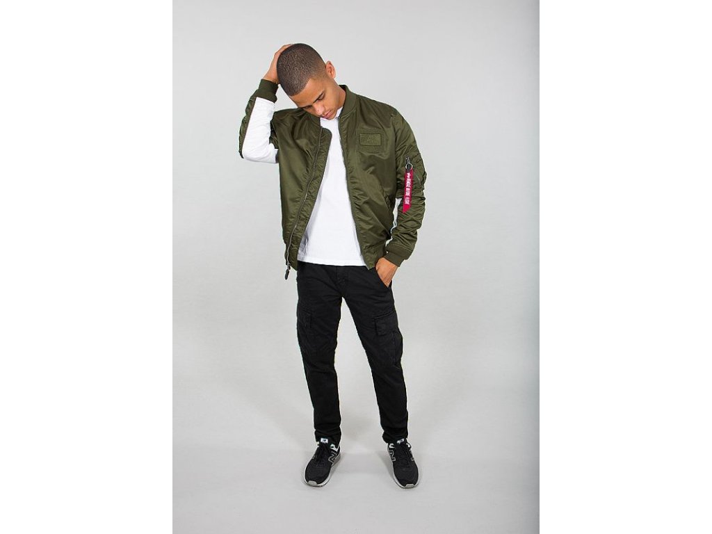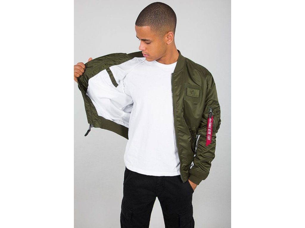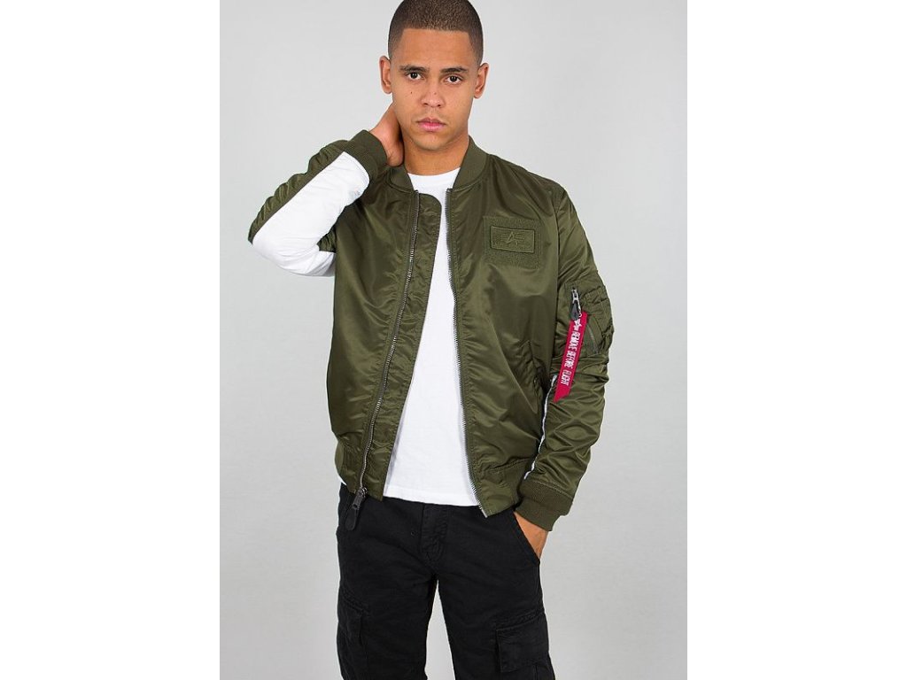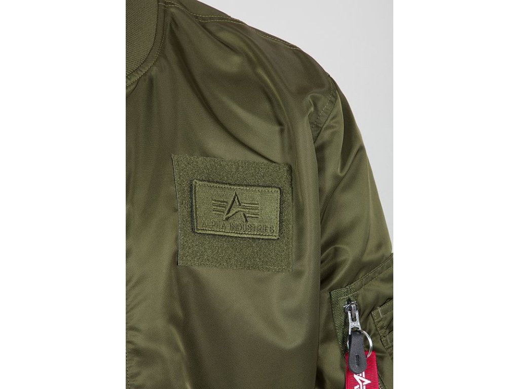 Bunda americké značky Alpha Industries v bomber stylu. Bunda odpuzuje vodu, ale je prodyšná a vhodná i do teplejšího počasí. Bunda má velcro panel s nášivkou Alpha Industries, která je odnímatelná, takže si můžete bundu ozdobit i vlastní nášivkou. Na zádech najdete velký nápis Alpha Industries a na rukávu nechybí kapsa se štítkem „remove before flight“.