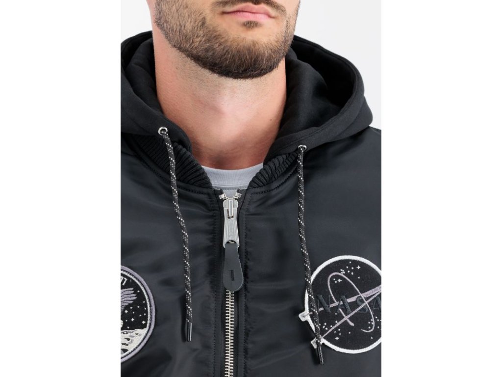 Alpha Industries MA-1 VF Hood Dark Side je prémiová pilotní bunda inspirovaná klasickým modelem MA-1, s přidaným moderním designem a prvky, které ocení zejména fanoušci vesmírných misí a astronomie. Tento model v sobě kombinuje ikonický styl letecké bundy s prvky NASA a mise Apollo 11.