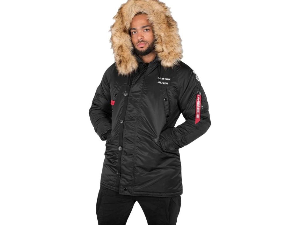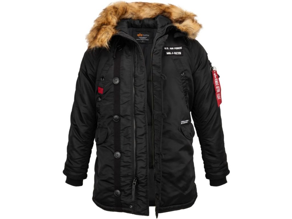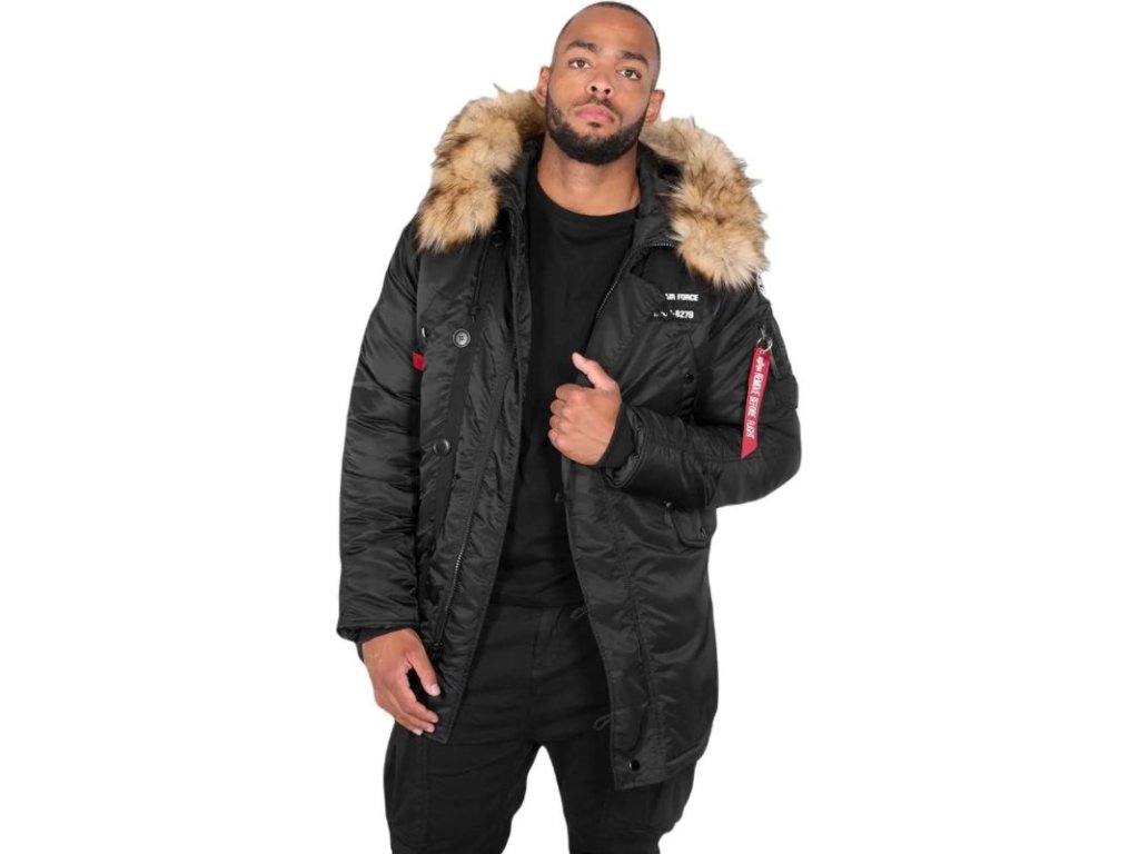 Odolná a teplá bunda Alpha Industries N3B Airborne v barvě black je určená do chladného počasí. Nylonový svršek a polyesterová vložka spolehlivě chrání před studeným větrem a nepříznivým počasím. Kapuce je lemovaná snímatelnou syntetickou kožešinou, která zvyšuje ochranu a pohodlí v mrazech.