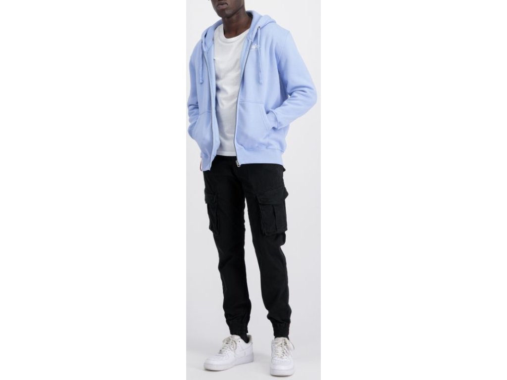 Detail: Logo Alpha Industries na gumové nášivce na zadní straně a malé logo vytištěné na přední straně přispívají k autentickému vzhledu značky.