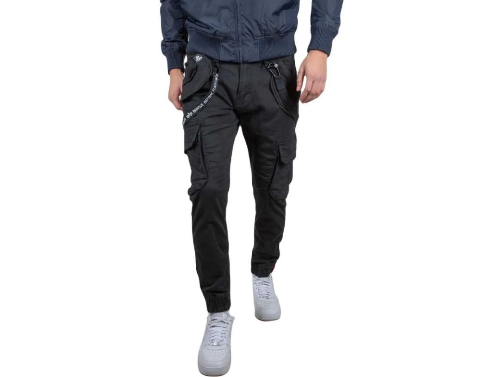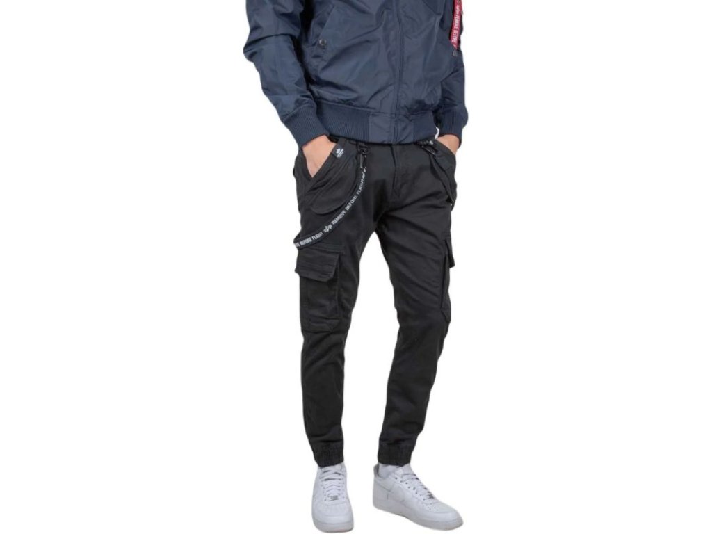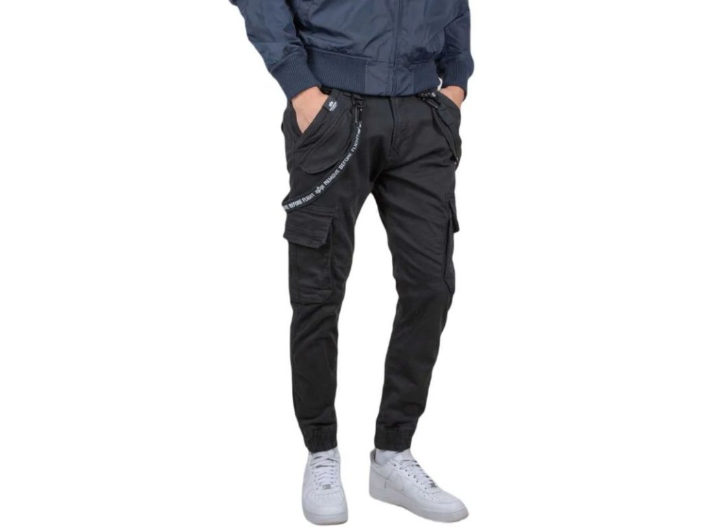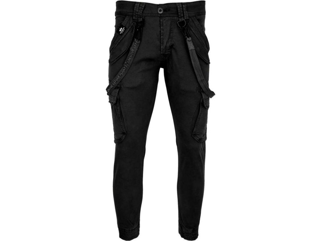 Pánské bavlněné kalhoty s trakmi Alpha Industries Utility v černé barvě jsou určené pro muže, kteří preferují sportovní, pohodlný a zároveň stylový vzhled. Kvalitní zpracování z 100 % bavlny zaručuje vysokou odolnost a komfort při nošení. Kalhoty mají zúžený (slim fit) střih a zapínají se na kovový knoflík a zip. Všechny zipy a knoflíky jsou označené logem značky.