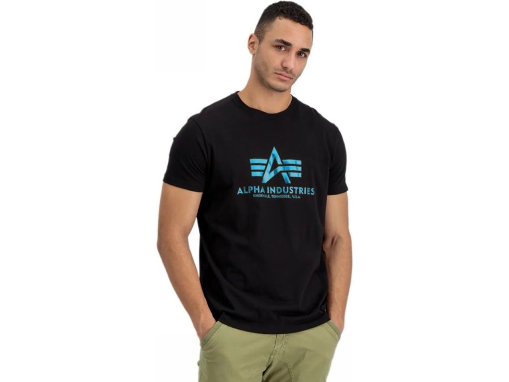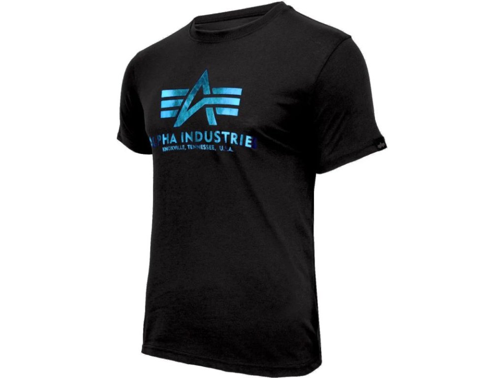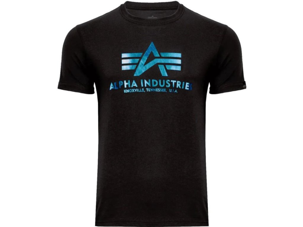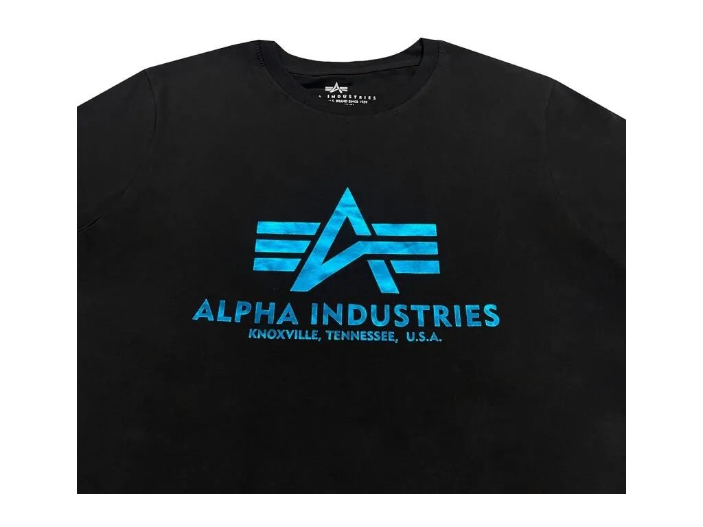 ALPHA INDUSTRIES Tričko BASIC Foil Print - black/blue (100501FP/93)