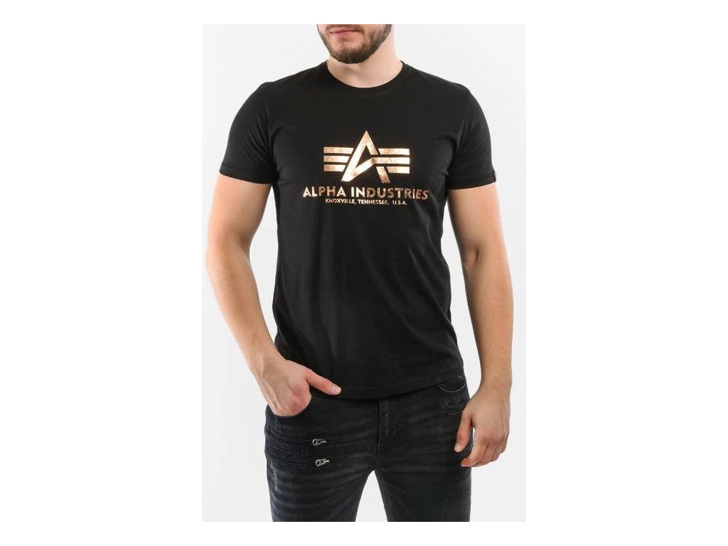 ALPHA INDUSTRIES Tričko BASIC Foil Print - černé/zlaté (100501FP/365)