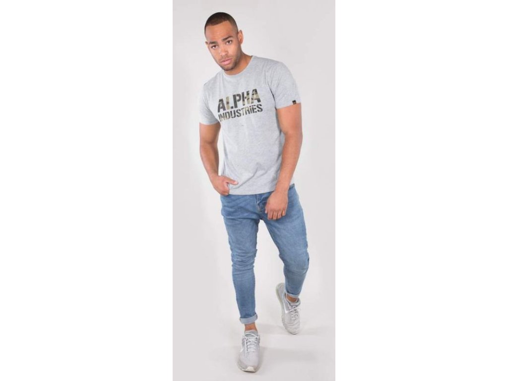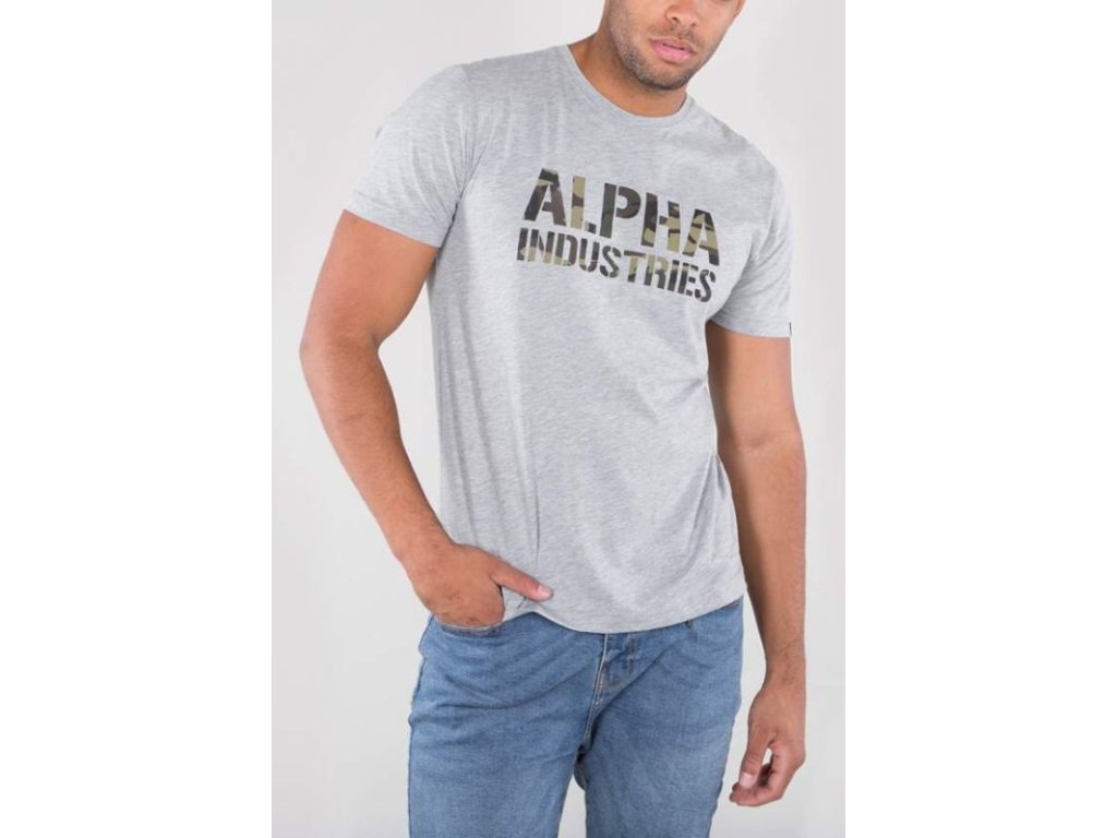 ALPHA INDUSTRIES Tričko Camo Print - šedé/woodland (156513/382)