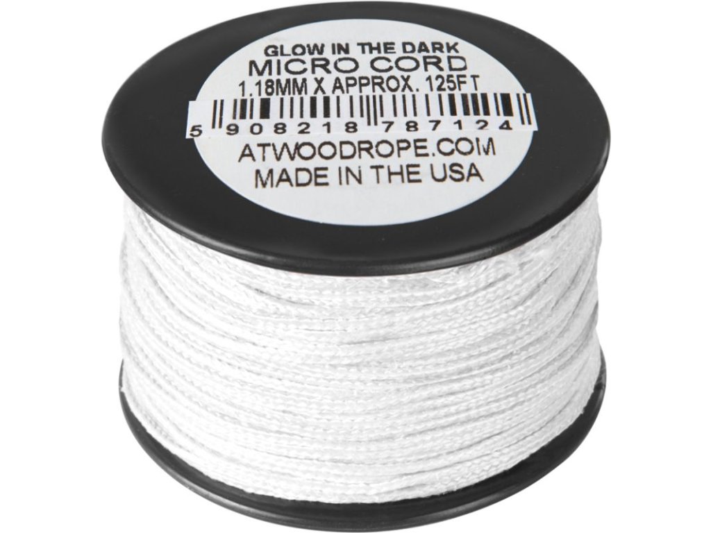 Micro Cord Uber Glow (125 stôp) je odolné lano na přežití dlouhé přibližně 38 metrů s pevností v tahu 14,9 kg a průměrem 1,18 mm. Je ideální na práce vyžadující přesnost. Šňůra mírně svítí, udržuje tento efekt až 14 hodin a je vybavena plastovou cívkou na opakované použití. Díky použitým materiálům je odolné vůči rzi, plísním a UV záření. Nestrácí barvu ani při dlouhodobém používání.