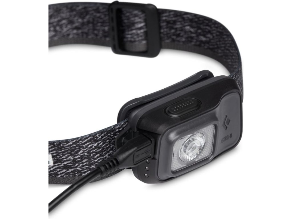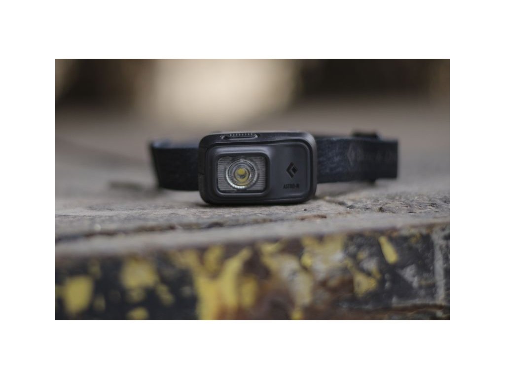 Model Astro 300-R se vyznačuje přítomností lithium-iontové baterie s kapacitou 1500 mAh a maximálním výkonem 300 lumenů, což umožňuje 3 hodiny nepřetržitého provozu. Čelová baterka Black Diamond je vybavena netlačícím elastickým páskem navrženým z recyklovaných ekologických vláken Repreve. Díky plynule nastavitelné konstrukci se dá volně přizpůsobit obvodu hlavy.
