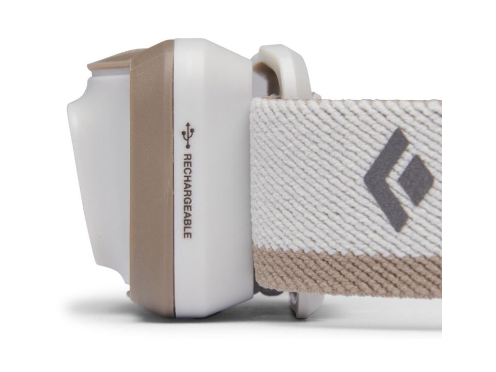 Model je vybaven integrovanou nabíjecí baterií s kapacitou 1500 mAh a indikátorem stavu nabití baterie, což usnadňuje přípravu na večerní aktivity. Několik provozních režimů umožňuje nastavit intenzitu a typ světla podle aktuálních potřeb uživatele (mluvíme o maximálním výkonu, možnosti stmívání, stroboskopu, červeném světle, stejně jako o možnosti přiblížení a oddálení). Kromě toho je čelová baterka od společnosti Black Diamond upevněna na pružném, netlačícím elastickém pásku navrženém z recyklovaných ekologických vláken Repreve.