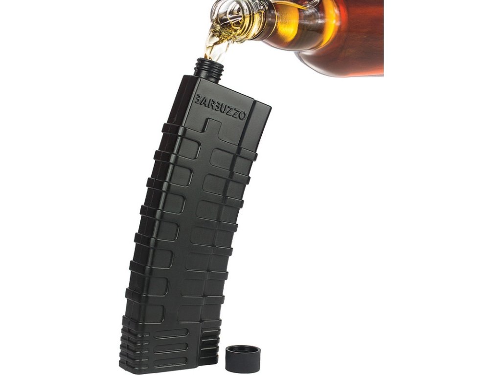 Caliber Gourmet Magazine Flask je originální placatka tvarovaná jako zásobník AR, určená pro diskrétní přenášení nápoje. Vyznačuje se lehkým plastovým provedením, šroubovacím uzávěrem a čistým černým designem.