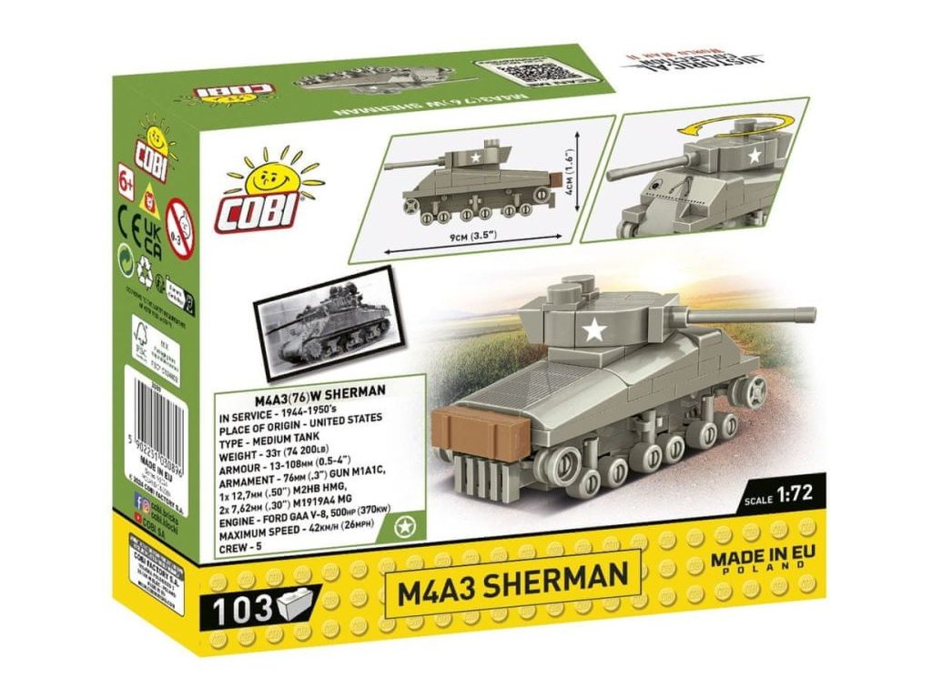 Minimodel vyrobený z kostek COBI byl navržen v měřítku 1:72 a sestává ze 103 kostek. Po sestavení má délku 9 cm. Navzdory kompaktním rozměrům si model zachovává všechny nejdůležitější prvky své historické inspirace! Na bocích vozidla jsou vytištěny americké značky. Tank lze posouvat díky rolovacím kolečkům. Věž tanku je také pohyblivá a lze ji otáčet.