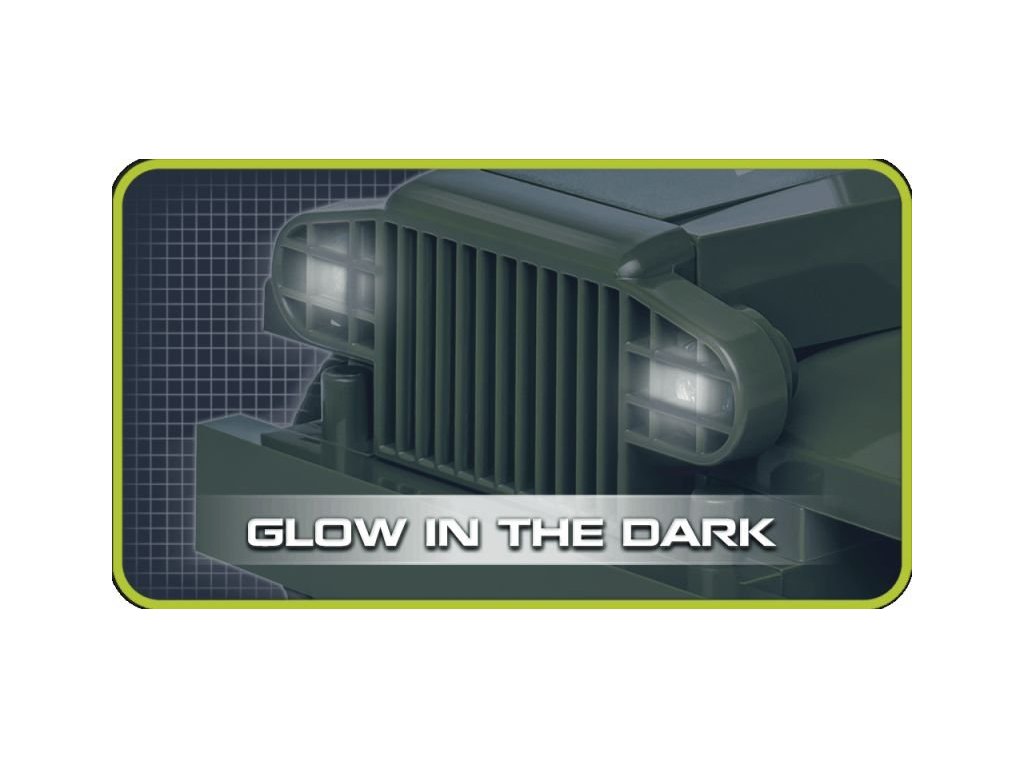 V soupravě najdete skvělá vícedílná křídla, blok imitující chladič, čelní sklo s vytištěnými stěrači a mnoho dalších užitečných prvků. Auto je jednoduché na stavbu a je náchylné na úpravy. Zkušenější stavitelé snadno využijí dostupné prvky na vytvoření dalších verzí osobních nebo nákladních vozidel! Sada obsahuje figurku záchranáře se senzačním novým potiskem na přilbě. Součástí vybavení jsou i nově navržená nosítka, která se nyní ještě lépe vejdou do vojenských souprav. Soupravu doplňuje blok s vytištěným názvem vozidla.