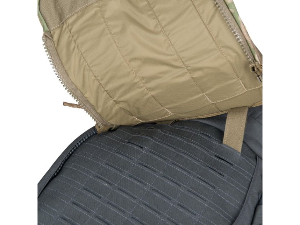 Střední batoh HALIFAX® je plně konfigurovatelný batoh. Obsahuje velkou hlavní komoru uzavíratelnou zipy YKK®. Interiér je podšitý velurovou látkou, která umožňuje připevnění dalších pouchů. Zadní strana vnitřního panelu je také pokrytá laser cut vyřezávaným MOLLE / PALS, které vám umožňují tento batoh přeměnit podle vašich potřeb. Horní část chlopně má dvě další kapsy, přičemž jedna z nich je lemovaná velurem.