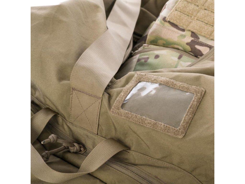 Pohodlný, široký transportní ramenní popruh s nastavitelnou délkou umožňuje nošení tašky na rameni a usnadňuje nasazení. Taška je vybavena transportními držadly a dvěma kompresními popruhy zpevňujícími dno. Velcro panely (suchý zip) na předních a bočních kapsách umožňují připevnit jakoukoliv nášivku nebo znak, např. Moral Patches a dvě fóliovaná okénka vám umožňují umístit identifikační nebo adresní odznak.