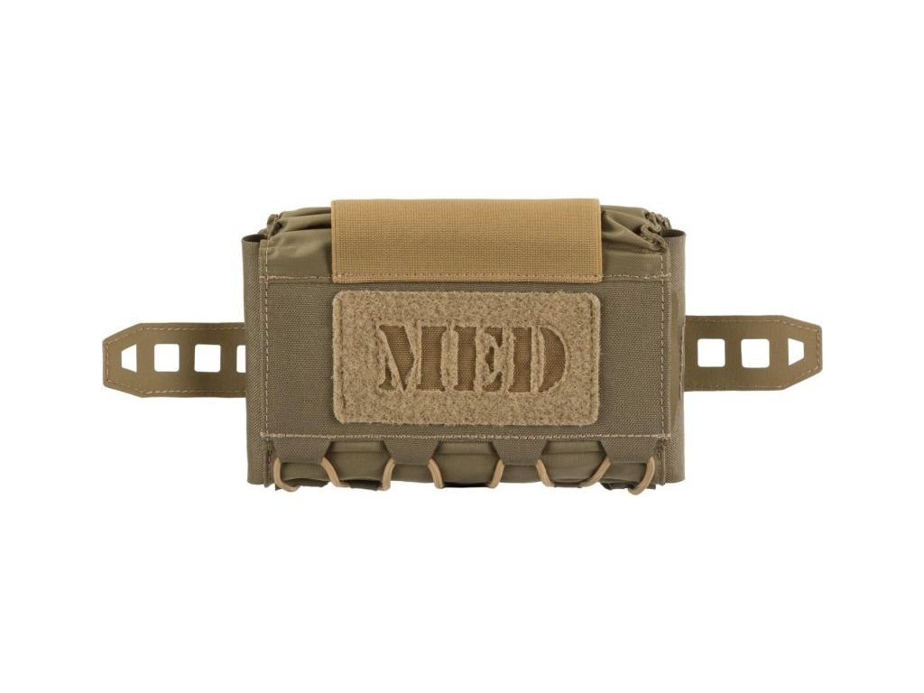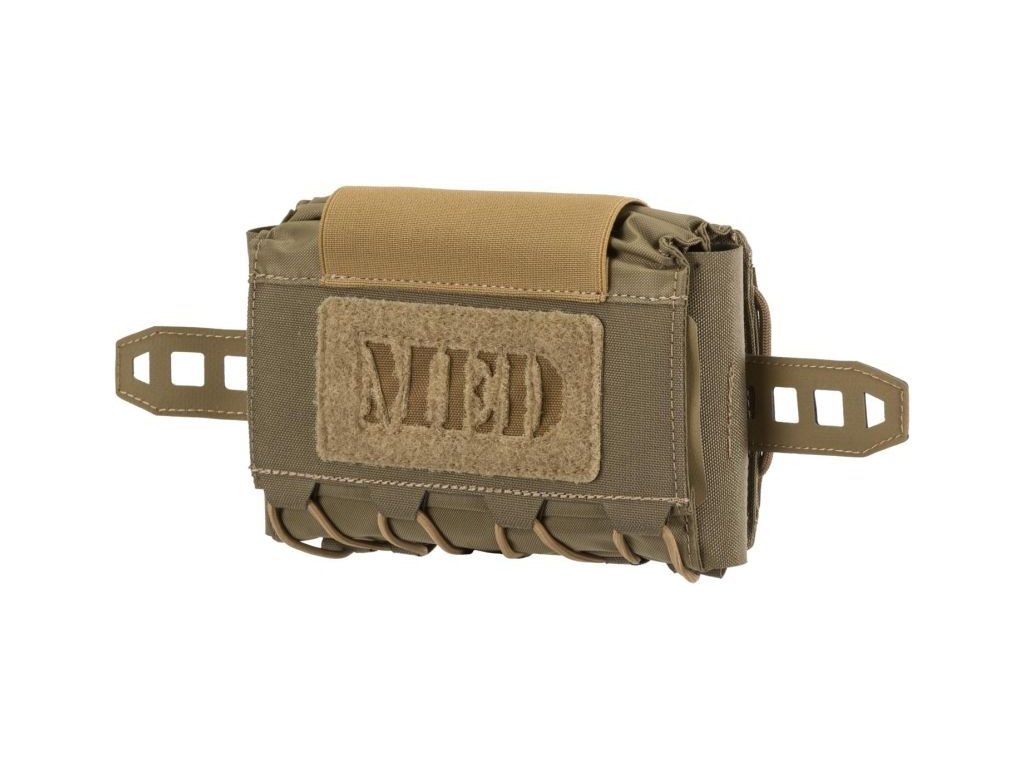 Vejde se do ní většina populárních souprav první pomoci potřebných během mise. Zdravotnické potřeby se upevňují pomocí elastických smyček. Minimalistickou obouruční vložku s rukojetí z Hypalonu® lze ovládat jednou rukou. V horní části kapsičky se nachází široké elastické poutko na přenášení škrtidla, zatímco na zadní straně vložky můžete připevnit kapsu na nůžky. Panel na suchý zip® s nápisem "MED" umožňuje rychlou identifikaci kapsy.