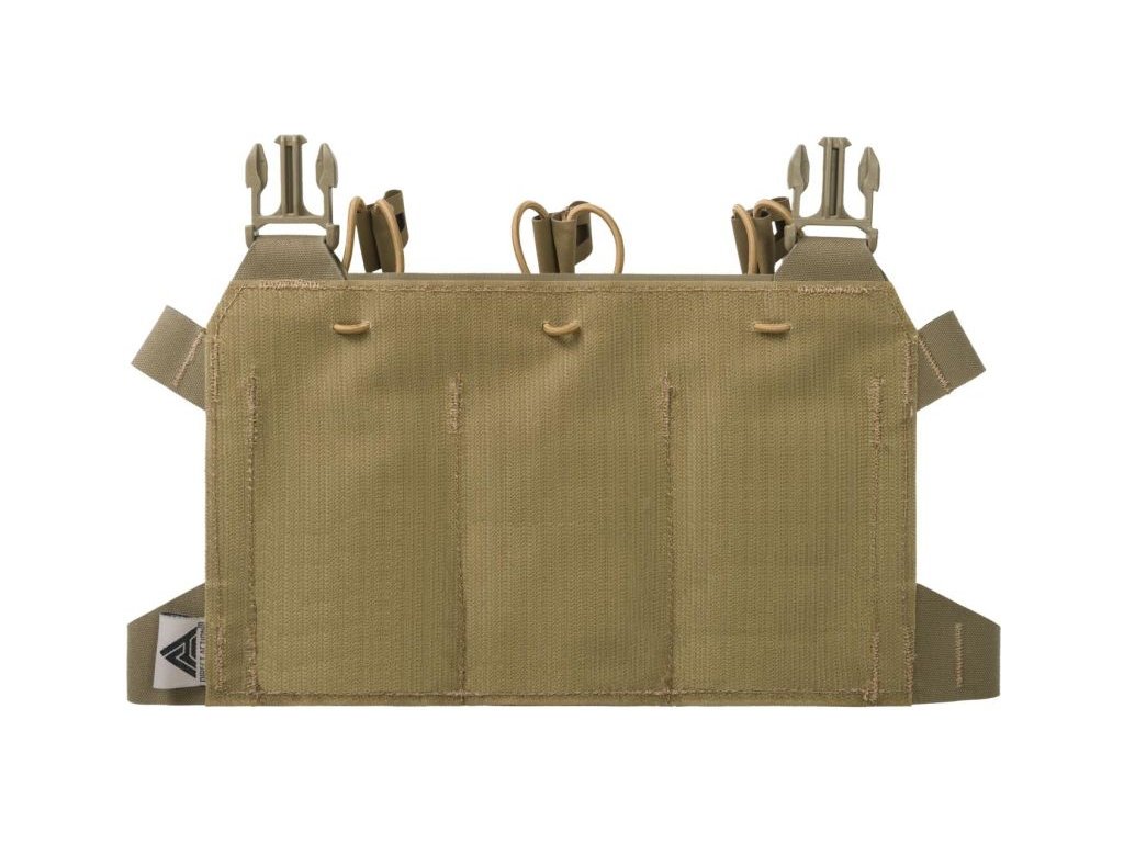 Přední panel se třemi sumkami na zásobníky od Direct Action vyrobený z laminátu Cordura 500D, určený k použití s vestami řady BEARCAT® a SPITFIRE®. Účelem panelu je nést až tři zásobníky pro M4/AR15. Díky skeletové konstrukci patří k nejlehčím ve své kategorii a zajišťuje minimalismus. Za upevnění zásobníků z horní strany jsou zodpovědné bungee šňůrky.