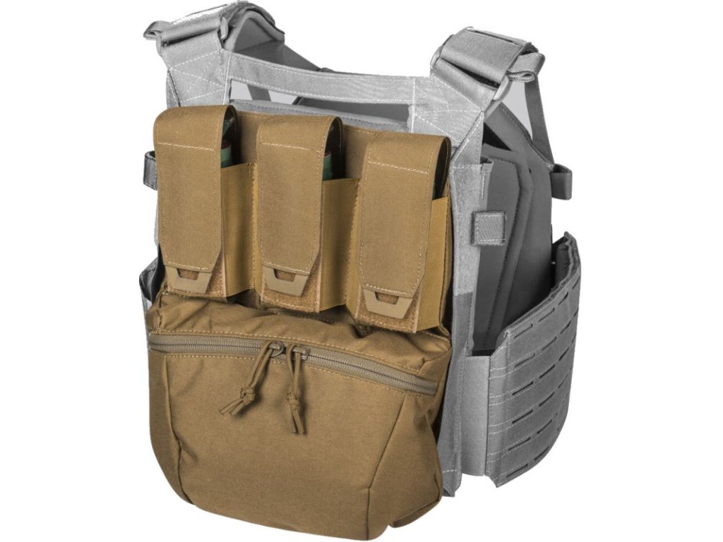 Úložná řešení: Panel obsahuje tři Velcro® uzavřené kapsy, ideální pro uložení flashbang granátů nebo náhradních zásobníků. Dále je vybaven velkou univerzální cargo kapsou se zipem, která je vystlaná měkkým materiálem, vhodným pro přenos předmětů citlivých na poškrábání, jako jsou brýle nebo NVG (noční vidění).