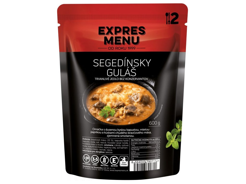 Složení: vepřové maso (33 %), kysané zelí (zelí, voda, sůl, kmín), hovězí vývar (voda, hovězí maso a kosti), smetana, cibule, rýžová mouka, kukuřičná mouka, řepkový olej, sůl kamenná, paprika mletá, česnek, kmín.