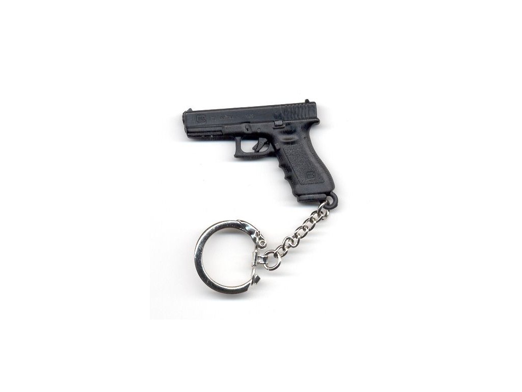 Jednoduchý a stylový přívěsek na klíče s plastovým výliskem nejoblíbenější pistole Glock 17.