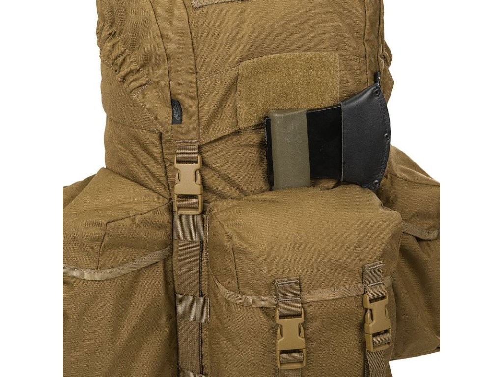 Batoh je navržen tak, abyste do něj sbalili to nejdůležitější vybavení pro krátkou cestu. Hlavní komora s objemem 18 l pojme oblečení a vybavení na kempování, do kapes po stranách se nám vejdou nádoby s jídlem nebo vodou. Střední kapsa má stahovací šňůrku, která chrání malé předměty před vypadnutím. Bergen má tři místa na přenášení sekery a dvě kapsy na pilku nebo nůž. K MOLLE / PALS skrytým na přední straně můžete připevnit další pouche nebo rukavice. Další prvky výbavy je možné připevnit zespodu nebo na klopu batohu. Vyrobeno výhradně z Cordury 500D.