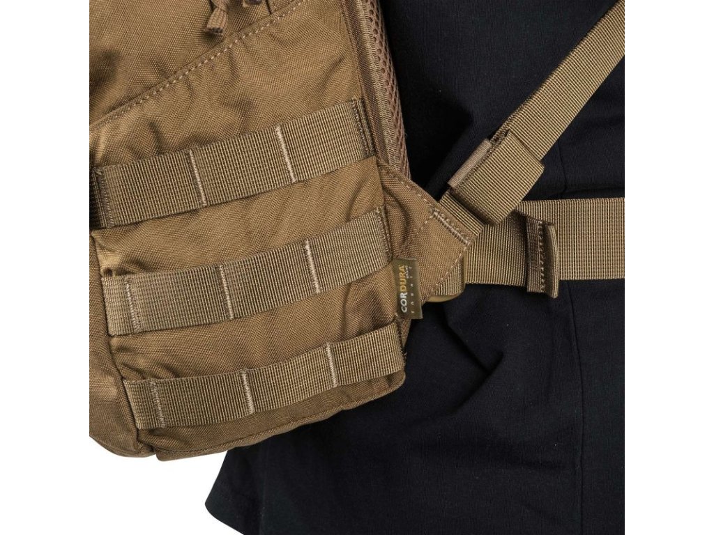 Přední komora je obložena měkkou velurovou látkou, která je kompatibilní se systémem Versatile Insert System®, který vám umožní přizpůsobit váš batoh tak, jak potřebujete. Přední a boční strany batohu jsou pokryty popruhy MOLLE / PALS. Vnější část je co nejjednodušší, s ID velcro panelem na přední straně a šňůrou, která může držet např. pončo.
