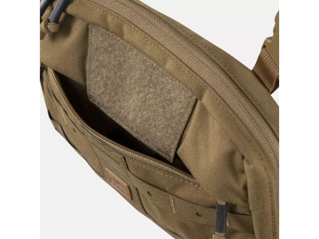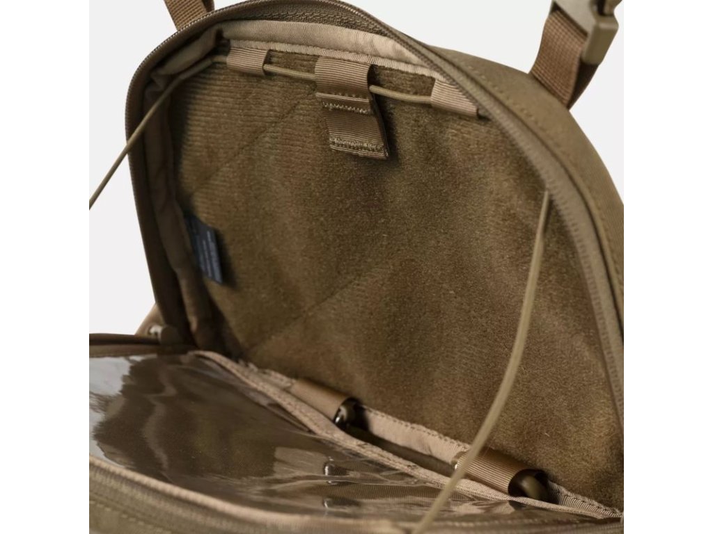 Navzdory malým rozměrům nabízí dostatek prostoru, kompatibilitu se systémem VIS (Versatile Insert System), praktickou organizaci a MOLLE/PALS vazbu na rozšíření. Vnitřní prostor je doplněn o odnímatelný panel na mapu a zadní stěnu tvoří jemný velur, ideální pro suché zipy.