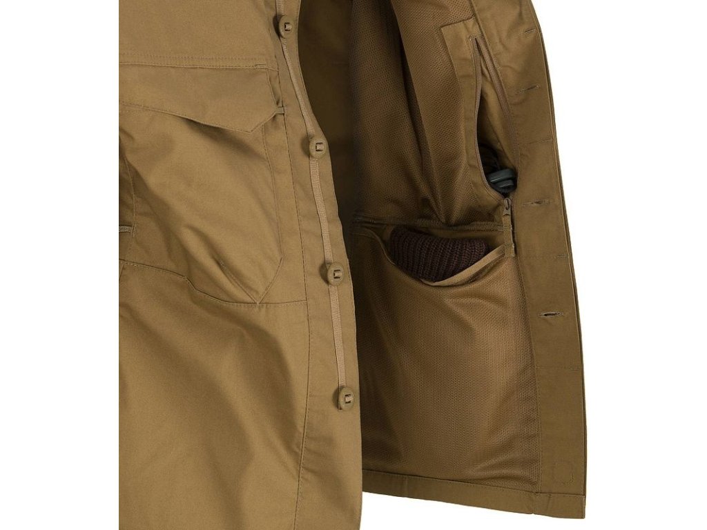 Klasické náprsní kapsy se zapínáním na knoflíky snadno pojmou věci jako kapesní nůž, křesadlo, kompas atd. Na uvázání a upevnění předmětů v kapsách lze použít ploché poutka. Woodsman má dvě vnitřní síťované kapsy a jednu napoleonskou, na zip. Samotná košile se zapíná na kanadské knoflíky.