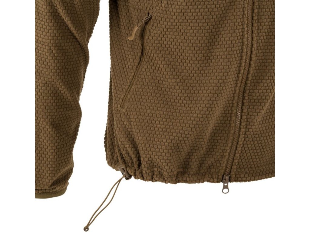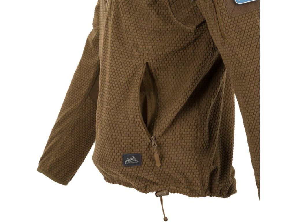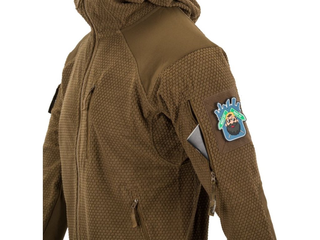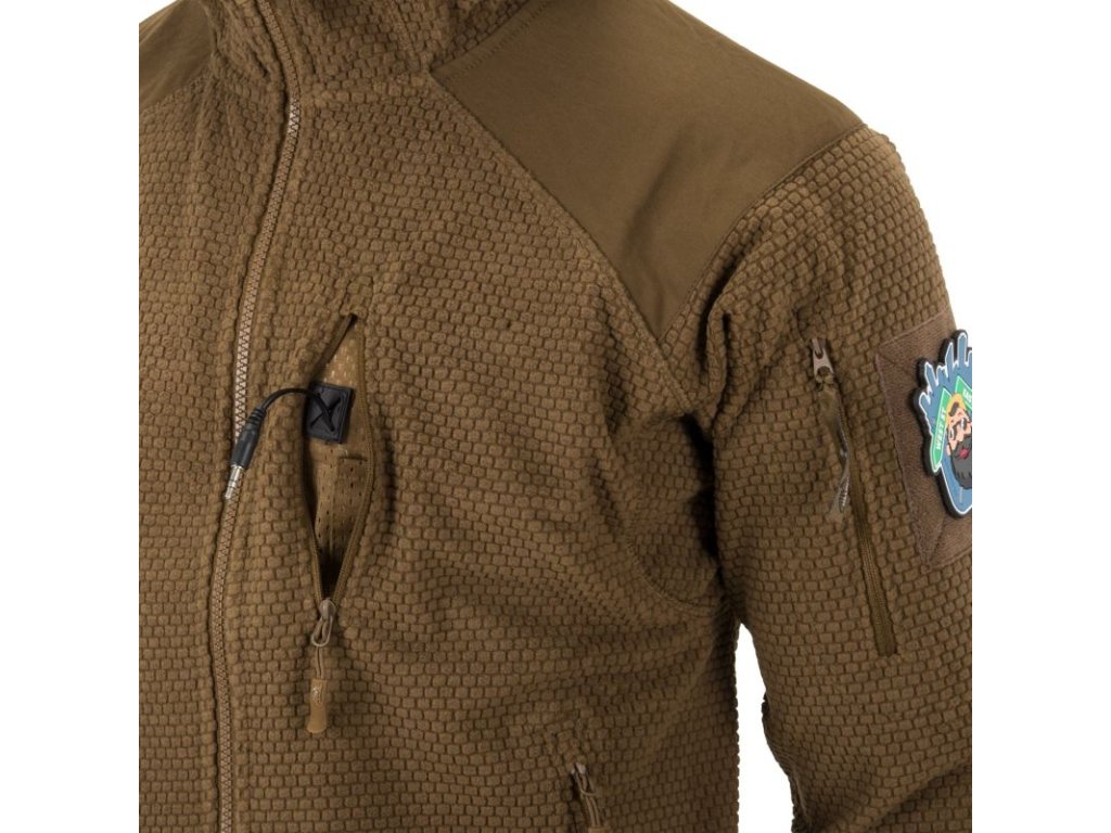 Mikina Alpha s kapucí je lehká fleecová bunda, výborná jako střední nebo v suchém počasí i jako vrchní vrstva. Mikina je vyztužená na ramenou a loktech, což zabraňuje opotřebení a zničení materiálu na nejvíce namáhaných místech. Bunda má pět vnějších kapes na zip. Dvě kapsy na rukávech, dvě po stranách a jednu na hrudi. Náprsní kapsa má také malý otvor na kabely. Šňůrka ve spodní části bundy poskytuje možnost stažení.