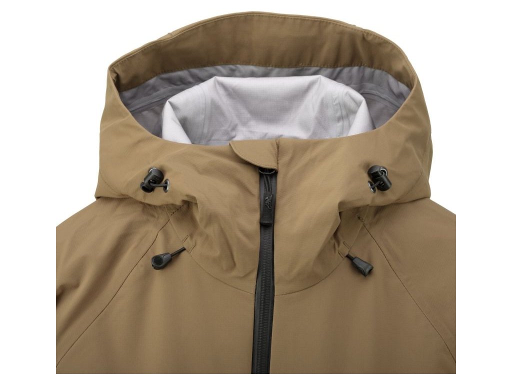 Maximální ochranu proti vlhkosti zajišťují také nepromokavé zipy YKK AquaGuard, kde hlavní zip je dvoucestný. Kromě toho je bunda Helikon vybavena lepenými švy a materiál byl impregnován DWR PFC Free. Hardshellová bunda Squall má kapuci s vysokým límcem, do kterého se dá bunda srolovat. Potom nezabírá mnoho místa a vejde se téměř všude.
