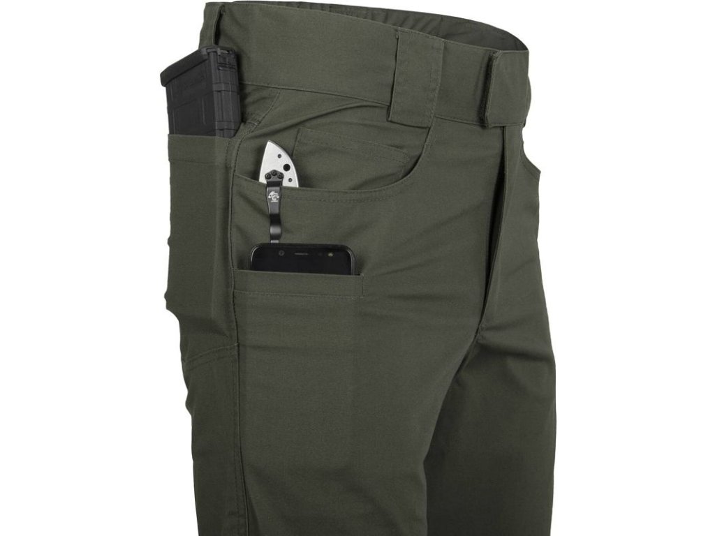 Nohavice Greyman® od firmy Helikon jsou vhodné na běžné nošení, ale i na rekreační/sportovní střelbu či na jiné outdoorové aktivity. Střih kalhot, zapínání na suchý zip, speciální provedení rozkroku, které zvyšuje komfort a životnost kalhot, zipy značky YKK®, široké poutka na opasek 50mm a guma všitá na zadní straně kalhot z nich dělají velmi komfortní a funkční kus do vašeho šatníku. Kalhoty mají velký počet kapes (9): 2 klasické kapsy vpředu s menší kapsou na zásobník, stehenní kapsy na mobilní telefon nebo jiné vybavení, 2 zadní kapsy klasické, 2 zadní kapsy na zásobníky.