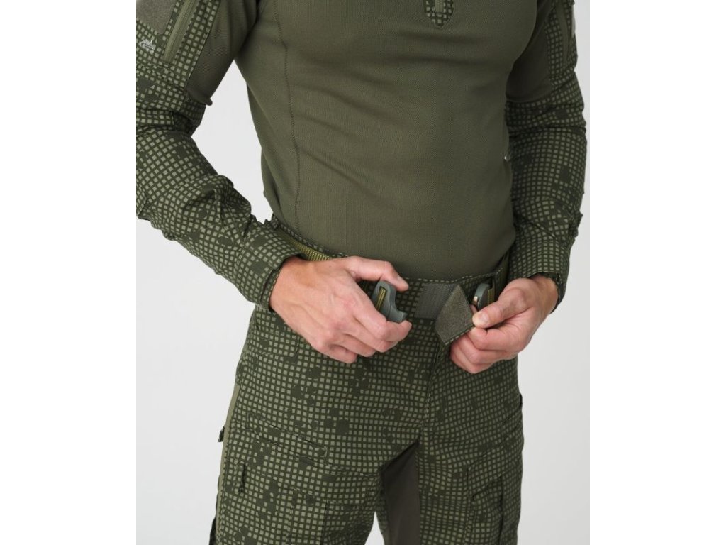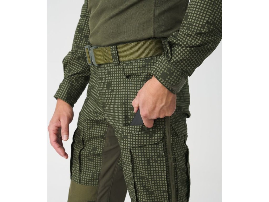 V životně důležitých oblastech (pás, rozkrok a zadní část kolen) jsme použili vložky z materiálu Versastrech. Ten rychle schne a má vysokou prodyšnost. Oblast kolen je vyztužena tkaninou Cordura 500D s otvory na ochranné vložky. Díky dodatečným šňůrkám umístěným pod kolenem a ve spodní části kalhot se dají kalhoty snadno přizpůsobit noze.