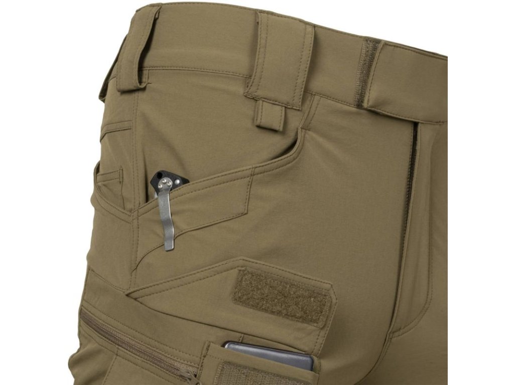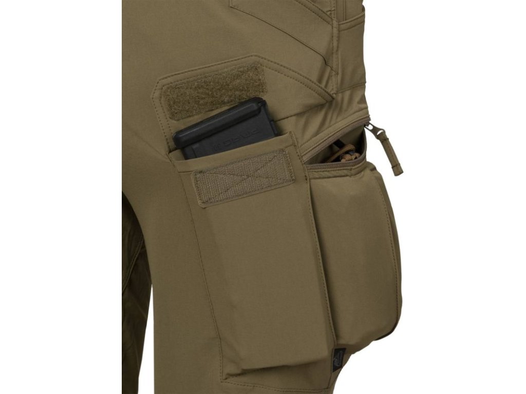 Střih a rozložení kapes zachovávají civilní vzhled a zároveň umožňují přenášení potřebného vybavení bez omezení pohybu. Elastický pas a zapínání na suchý zip umožňují nastavení velikosti. Velká poutka na opasek podporují široké opasky (až do 50 mm). Džínový střih na zadní straně kalhot brání jejich klouzání. Kapsy jsou vyztužené pro odolnost vůči častému používání.