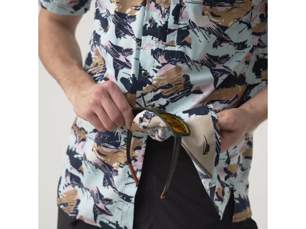 Havajské košile jsou známé svým volným střihem a krátkými rukávy. Jako vždy jsme k této klasice přidali několik praktických detailů: poutko na sluneční brýle, integrovanou hadřík na čištění skel v rohu a skrytou kapsu se zipem. Naše havajské košile jsou vyrobeny z kvalitní bavlněné směsi (97 % bavlna, 3 % elastan). Tato látka je měkká, prodyšná a mírně pružná, což činí košili ještě pohodlnější.