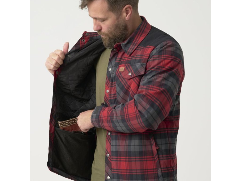 Design Slate Crimson Plaid (kombinace šedo-červených kostkovaných vzorů) dodává košili atraktivní a praktický vzhled. Prostorné kapsy a zpevněné kritické oblasti zvyšují její životnost a pohodlí.
