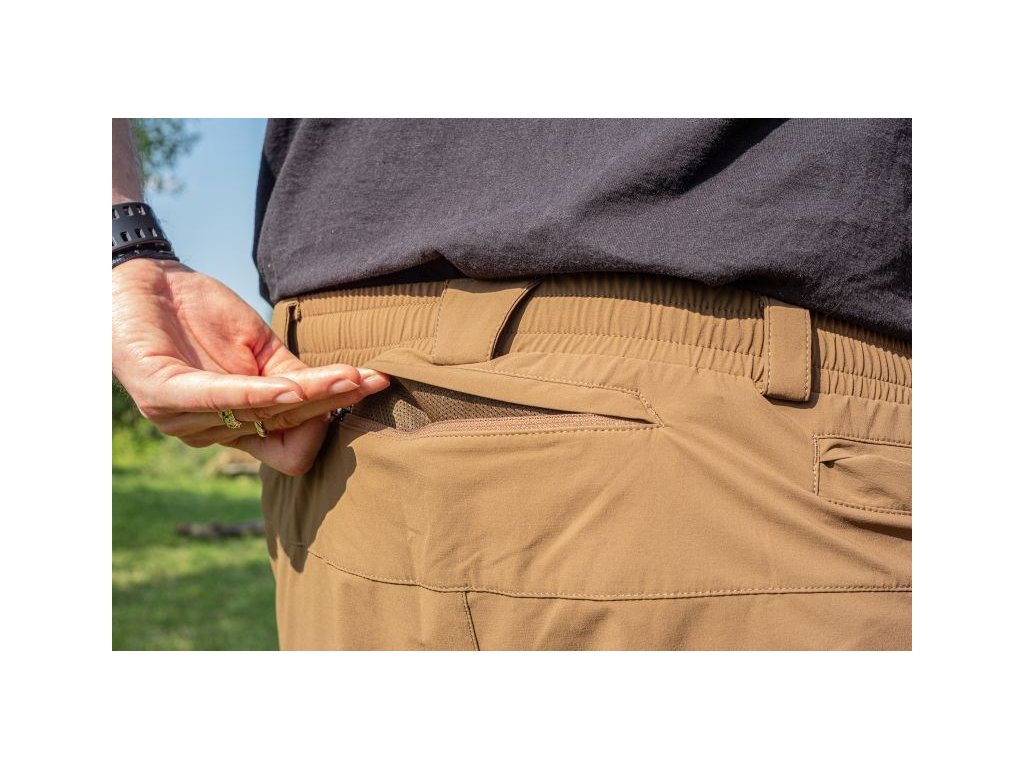 Šortky UTILITY LIGHT SHORTS mají šest kapes: tři na zip (dvě vpředu, jednu vzadu) a dvě menší na bocích a jednu malou vnitřní na klíče. Takové uspořádání kapes umožňuje lepší rozložení přenášených předmětů. Díky tomu nejsou kalhoty na žádné straně přetížené a neomezují pohyb. Více prostoru navíc znamená více možností a větší diskrétnost v případě potřeby.
