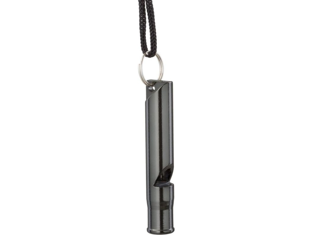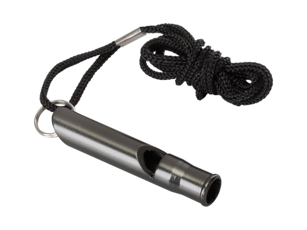 Jednoduchá záchranná píšťalka od Helikonu. Konstrukce píšťalky způsobuje, že i mírný závan vzduchu produkuje hlasitý zvuk.