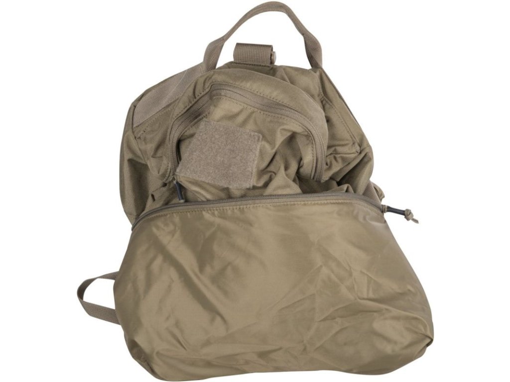 Další kapsu, tentokrát plochou, najdete na přední straně tašky. Hlavní úložný prostor je přístupný přes chlopeň otevíranou pomocí dvoucestného zipu. Na chlopni pak najdete další panel VELCRO pro nášivky a jmenovky. Dno tašky je zesílené polstrováním, nemusíte se tak obávat poškození neseného vybavení a navíc je opatřeno protiskluzovými panely.