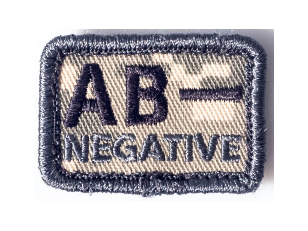 - Textilní nášivka s informací o krevní skupině (AB Negativní)