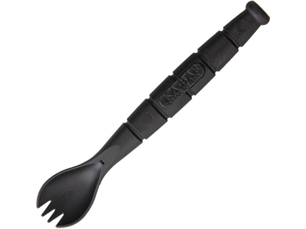 Kombinovaný příbor KA-BAR se skrytým nožem se zoubkovaným ostřím. Ideální na turistiku a camping.